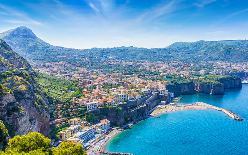Sorrente est une ville côtière de la péninsule de Sorrente, située de l'autre côté de la baie de Naples, dans le sud-ouest de l'Italie.